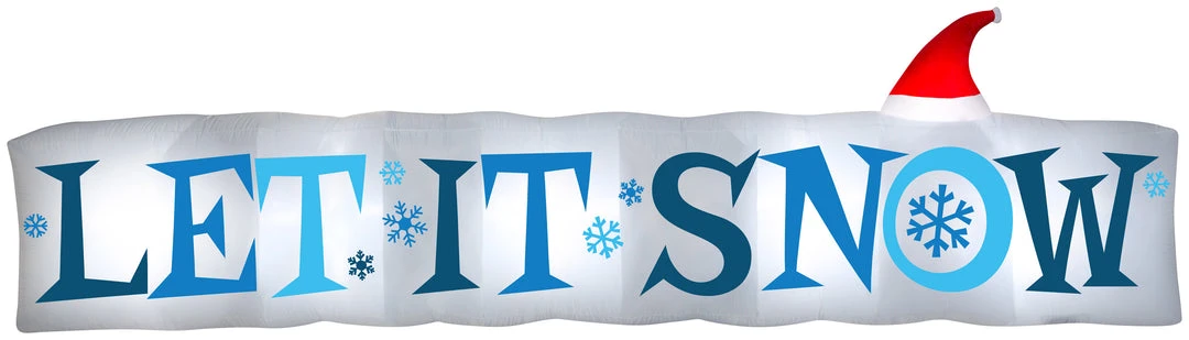 Welcome the season with an Airblown® Inflatable “Let It Snow” sign! Accented with a Santa hat and icy blue lettering, our whimsical inflatable makes a delightful addition to your outdoor Christmas decorations. Setup is super simple. Just plug it in, stake it down and watch the magic unfold. Includes everything needed for easy outdoor setup.